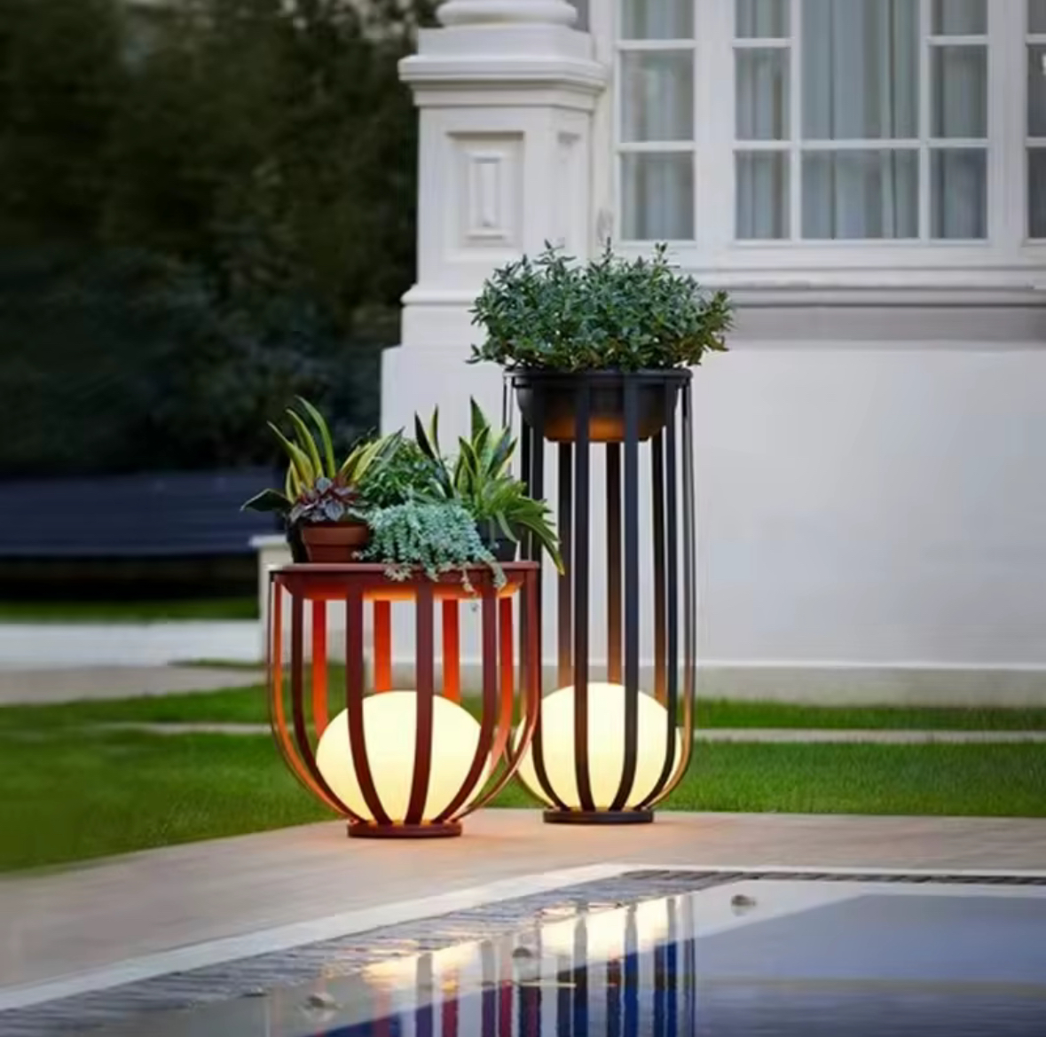 Ge din trädgård eller altan en lyxig och modern känsla med detta eleganta växtställ med integrerad belysning. Den unika designen kombinerar planteringsyta och dekorativ ljuskälla i ett – perfekt för att skapa en stämningsfull atmosfär både dag och natt.