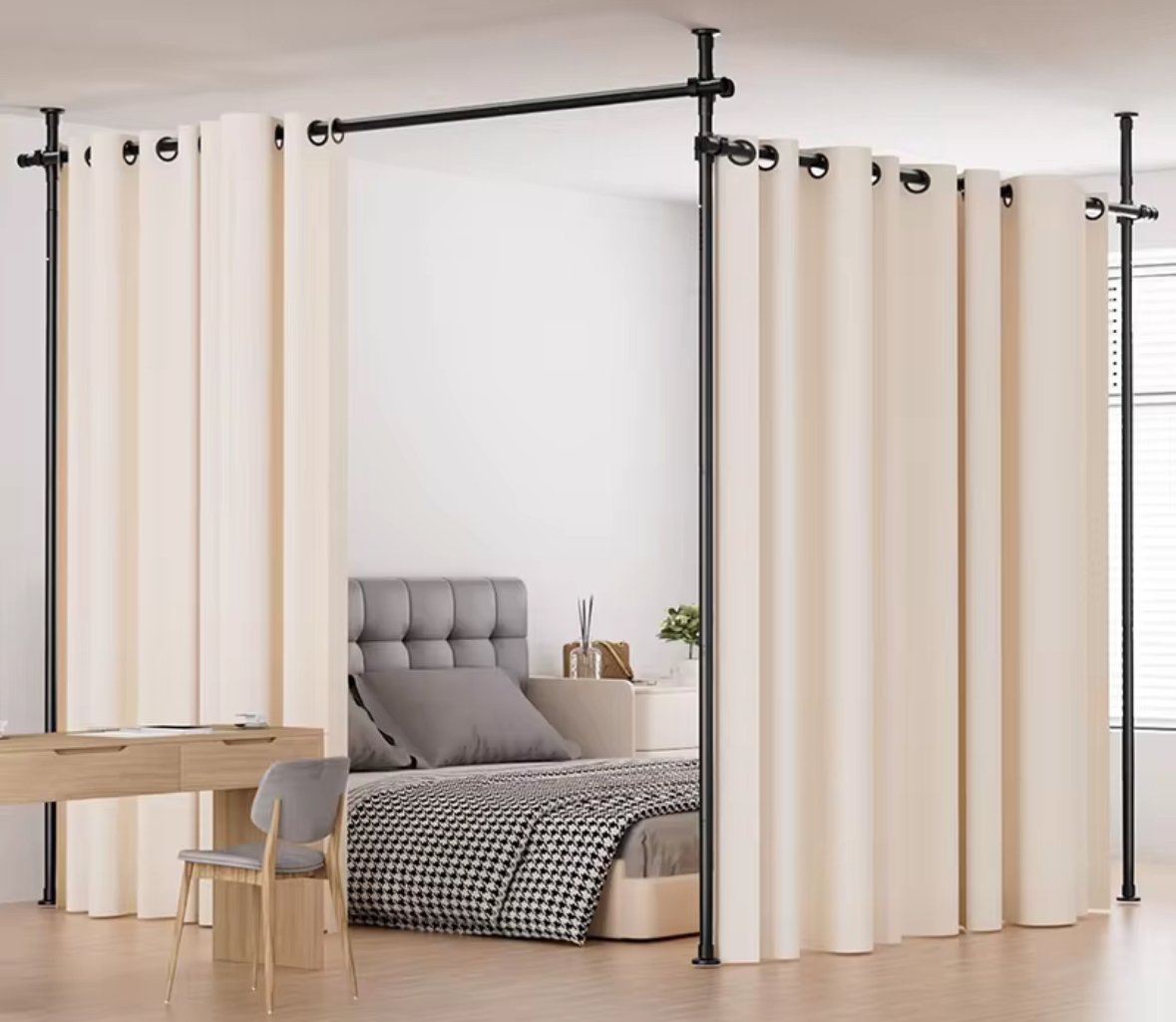 Skapa eleganta avskärmningar i ditt hem eller kontor med vår fristående gardinstång. Den justerbara bredden (122–305 cm) och höjden (71–178 cm) gör det enkelt att anpassa den till olika utrymmen som sovrum, kontor, badrum, toalett, omklädningsrum och vardagsrum. Den innovativa designen kräver ingen borrning eller skador på väggarna, vilket gör installationen snabb och enkel.